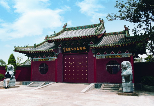 欧阳修陵园位于河南省新郑市区西13公里辛店镇欧阳寺村。该园环境优美,北依岗阜,丘陵起伏,南临沟壑,溪流淙淙。陵园肃穆,碑石林立,古柏参天,一片郁郁葱葱,雨后初晴,阳光普照,雾气升腾,如烟似雨,景色壮观,故有“欧坟烟雨”美称,为新郑古代八景之一。