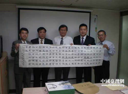 济源市台办向台湾的企业家发放了济源画册和招商项目册,还向企业和协会赠送了济源的书法作品。