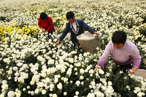 怀菊花,《本草纲目》中称怀菊花因花味甘苦、性凉,有疏风清热、清肝明目、祛毒养颜作用。药理实验发现,怀菊花含有多种心脏活性成分,怀菊花制剂可以扩张冠状动脉,减轻心肌缺血状态,对高血压、动脉硬化等有明显功效。