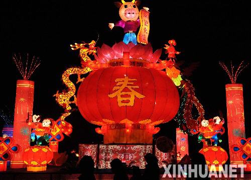 2009年1月28日 赏彩灯度佳节 这是1月27日晚在昆明大观公园内拍摄的迎春彩灯。 在云南省昆明市举办的首届迎春彩灯花会上,60多组来自四川自贡的精品彩灯在夜间流光溢彩,绚丽夺目,吸引众多市民和外地游客前来观赏。 新华社记者蔺以光摄