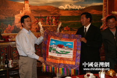 中国台湾网7月7日拉萨消息 昨天晚上,为了表示对海峡两岸青藏行联合采访团的热烈欢迎,西藏自治区有关领导在拉萨金桥酒店举行了宴请仪式。