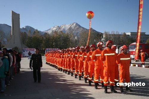 图为担负消防、救灾等任务的西藏救援武装力量首次集体亮相