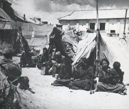 无力支付差祖和高利贷的农奴逃进拉萨,形成一处处乞丐村,这是拉萨鲁普乞丐村一角。新华社资料