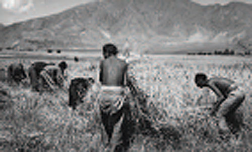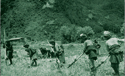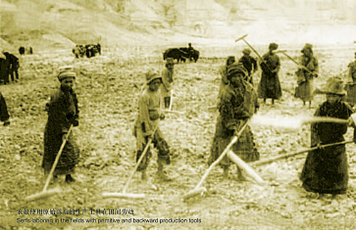 山南错那地区落后使用木棍和铁锄翻耕土地