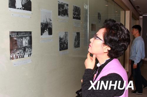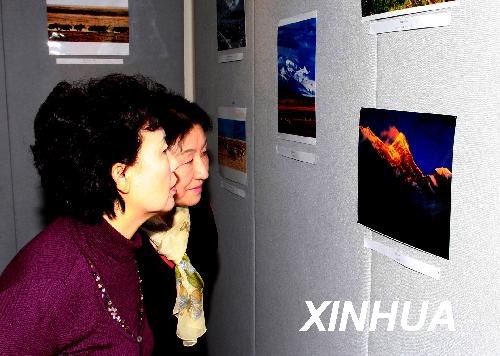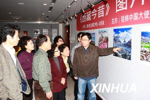3月14日,在韩国首尔中国文化中心,《西藏今昔》图片展的一组照片吸引了观众目光。
