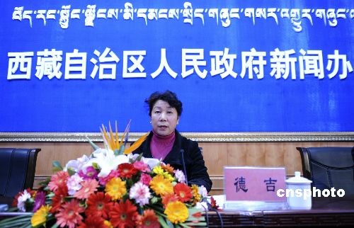3月2日下午,西藏自治区人民政府副主席德吉在拉萨的一场发布会中指出,上世纪50年代前的旧西藏是世界上侵犯人权最严重的地区之一。1959年3月,在平息西藏上层反动集团发动的全面武装叛乱的同时,中央人民政府顺应西藏各族人民意愿,与西藏各族人民一起,掀起一场轰轰烈烈的群众性民主改革运动,这是人权发展史上划时代的伟大变革。 中新社发 廖攀 摄