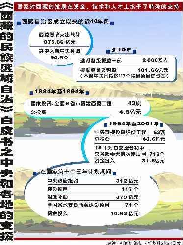1965年西藏实行民族区域自治制度以来,西藏人民在中央政府的领导下,以主人翁的姿态积极参与管理国家和地方事务,充分行使宪法和法律赋予的自治权利,投身西藏的现代化建设,实现了西藏社会的跨越式发展,深刻地改变了西藏的贫穷落后面貌,大大提高了自身的物质文化生活和政治生活的水平。