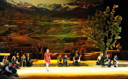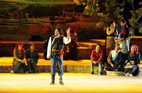 “纪念西藏民主改革50周年演出周”在京拉开序幕 2月28日,演员在演出话剧《扎西岗》。 新华社记者 饶爱民 摄