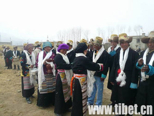 妇女们为参赛者敬献切玛、青稞酒、酥油茶。 摄影:曲晓丽