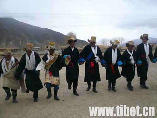 男男女女围成一圈,开始跳“锅庄”。 摄影:曲晓丽