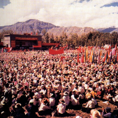 农奴们集会,强烈要求彻底摧毁西藏万恶的封建农奴制度