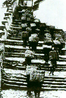 农奴主外出由农奴背驮,行走山区陡坡小道