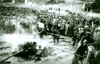 翻身农奴愤怒焚烧三大领主据以压迫和剥削他们的高利贷债契和人身依附的文契