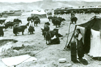 当雄县翻身牧民央宗家分到的新帐篷和畜群