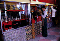 西藏民族手工业经过千百年来的不断实践发展,形成了鲜明的民族风格和工艺特色,产品、工艺的区域性专业化倾向也更加明确。特别是20世纪80年代以来,民族手工业的发展得到政府和市场的有力支持,一些传统产地再度焕发出发展民族手工业的活力。目前,民族手工业的产品品种有2000多个,这些手工艺品既是民族特需产品,又是旅游纪念品。1997年夏天,笔者在昌都县嘎玛乡亲眼目睹了这个昔日的匠人之乡,正在民族手工业的发展中重新崛起。该乡的翁达岗村有32户居民,其中24户掌握有画唐卡、或铸造佛像、或加工各类金、银、铜、铁和木器等工艺和技术,全村76名青壮劳动力中有31名专职从事手工业生产。全村人均年收入达到2000元。嘎玛乡的经济收入中已有近一半来自民族手工业的收入。西藏日喀则地区拉孜县孜龙村和谢通门县卡嘎两村,以盛产藏刀闻名。目前,当地藏刀生产已从最初的家庭作坊发展到按照市场需求规模化生产,有效地增加了农牧民的收入。2001年,拉孜县共售出藏刀3340把,销售额近19万元。日喀则的亚美集团目前是西藏最大的民族手工业集团,经营的品种有1600多种,资产已达上千万。