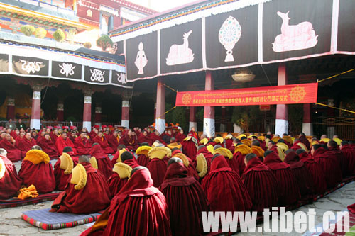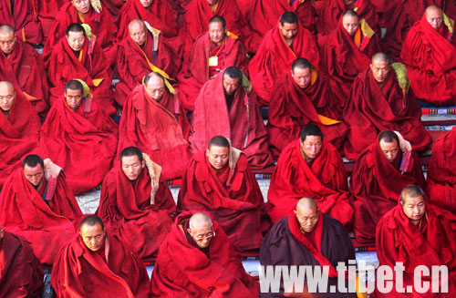 来自色拉寺、哲蚌寺、甘丹寺、大昭寺、热堆寺的陪考僧人、高级学衔僧人(拓让巴)、高僧大德共计200多人参加了此次活动。(王舒 吕洋)