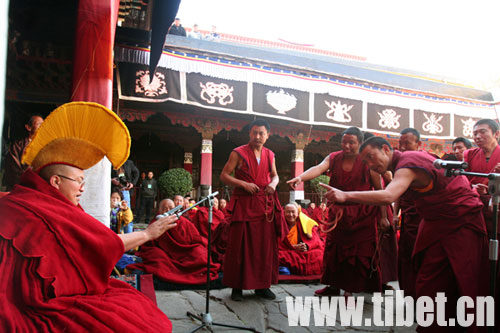 考僧在进行激烈的辩经 摄影:王舒