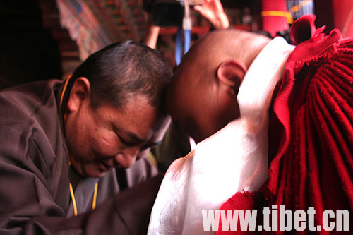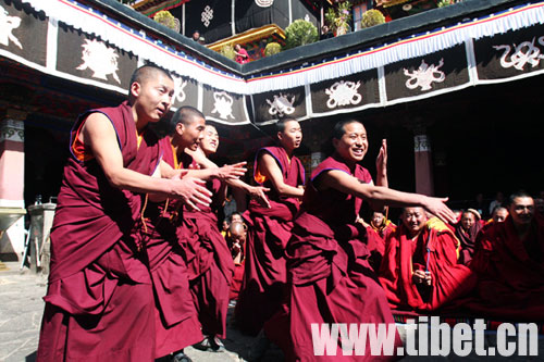 珠康·土登克珠向获得格西拉让巴学位的僧人表示祝贺 摄影:王舒