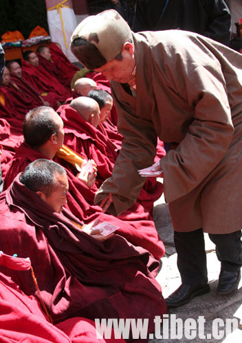 西藏自治区副主席多托代表自治区人民政府,向获得2009年度格西拉让巴学位的考僧表示祝贺,并向他们赠送了五彩缎、袈裟、奖金等。西藏政协副主席、中国佛教协会西藏分会会长珠康·土登克珠,向获得格西拉让巴学位的考僧颁发了格西拉让巴学位证书。西藏自治区民宗委负责人,代表自治区人民政府向参加立宗活动的全体僧人提供斋饭并发放布施。