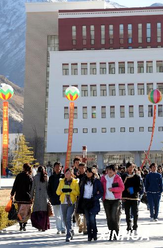 资料图片:2008年12月16日,西藏大学校园内的莘莘学子。当日,西藏大学改扩建工程竣工暨进入“211工程”重点建设行列庆祝大会在拉萨举行。新华社记者 格桑达瓦 摄