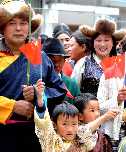“北京是我心中的太阳。现在,我的心里就像被太阳照进了一样!”次仁曲珍老阿妈凝望着五星红旗,眼里闪烁着晶莹的泪花。是啊,是炙热的太阳驱散了高原千百年来的黑暗,给我们送来了光明和温暖;是鲜艳的五星红旗引领我们在有中国特色、西藏特点的发展路子上阔步前进。