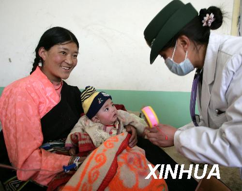 资料图片:3月23日,武警西藏总队医院医生为病人诊断。新华社发(钱檬 摄)