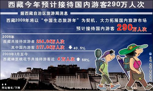 图表:西藏2009年预计接待国内游客290万人次