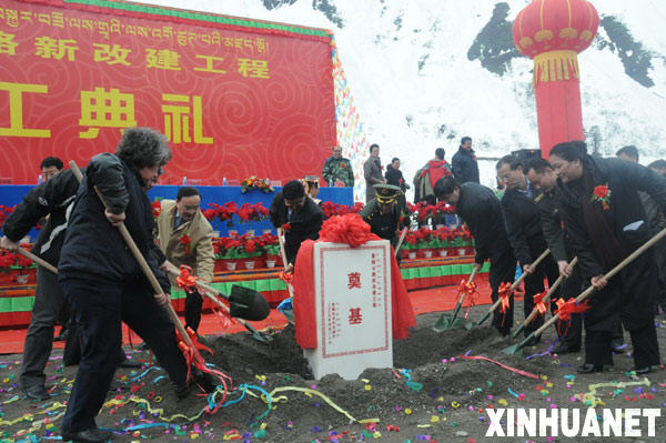 在嘎隆拉雪山下举行的墨脱公路新改建工程奠基仪式(4月20日摄)。4月20日,墨脱公路新改建工程正式开工建设。西藏林芝地区墨脱县是全国唯一一个至今未通公路的县,随着这一工程的建设,墨脱有望在3年内告别“高原孤岛”的原始交通状态。新华社记者 涂洪长 摄