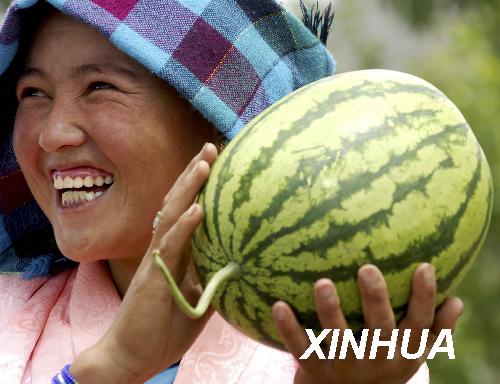资料图片:西藏日喀则农民喜收西瓜(2007年6月15日摄)。新华社记者 普布扎西 摄