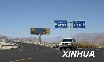 资料图片:2006年2月25日,一辆汽车行驶在日喀则至拉萨的公路上。新华社记者拉巴次仁摄