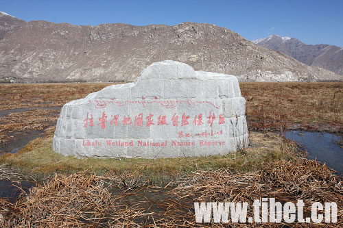 资料图片:热地题词:拉鲁湿地国家级自然保护区。石坚摄