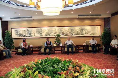 湖北省副省长田承忠25日下午在恩施会见了率台湾少数民族代表前来参加恩施女儿会的中华海峡两岸少数民族交流协会理事长简东明一行。(中国台湾网 杨丽 摄)
