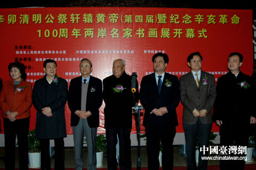 中国台湾网4月6日西安消息 日前,清明公祭轩辕黄帝(第四届)暨纪念辛亥革命100周年海峡两岸书画展在西安隆重开幕。原中共陕西省委书记、原省政协主席安启元,省政协副主席、民革陕西省委主委李晓东,中国书协顾问、原副主席钟明善先生出席本次活动,陕西省台办副主任赵有奇主持本次活动。
