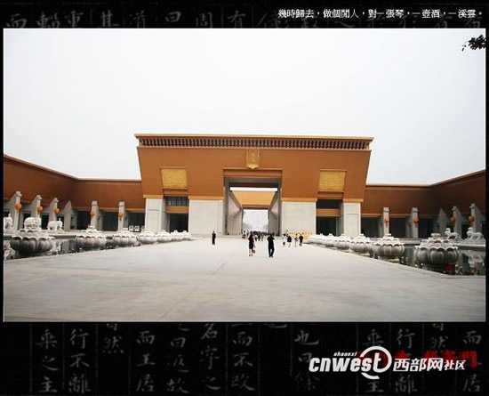 148米的法门寺合十舍利塔于2009年5月9日落成。其造型如同合十的双手,中间镂空部分是一座传统形式的唐塔。塔前铺设了一条长达1230米、宽108米的佛光大道,一些源于佛教经典题材的景观小品及金色菩萨像点缀在大道两侧。大道两头分别是可容十万人的朝圣广场与山门广场。(网友:乐拍智障 更多图片>>)
