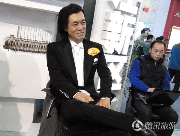第十五届中国东西部合作与投资贸易洽谈会今天(6日)上午在陕西西安开幕。各个展馆异彩纷呈,更纷呈的是曲江新区展馆一直熙熙攘攘水泄不通,挤了半天才发现有大明星在此——中央电视台著名主持人李咏,竟然有粉丝准备索要签名,才被告知这是仿真硅像机器人。