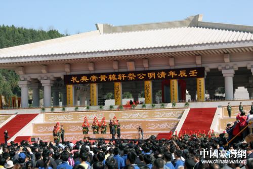 4月4日上午,壬辰年(2012)清明公祭轩辕黄帝典礼在陕西黄帝陵隆重举行。(中国台湾网 杨丽 摄)