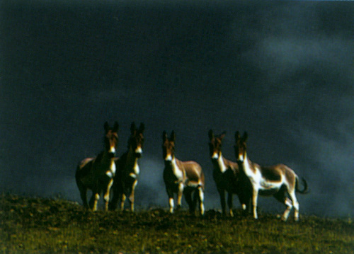 站在山岗上的藏野驴。
