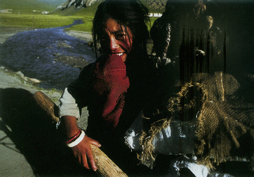 本来我还担心这个几乎与世隔绝的部落不会欢迎我们这些外来人,乡干部跟他们说明了我们的来意,他们很快就把我们当成了朋友,不仅送来了水和干牛粪,还专门替我们搭了一顶可以烧火做饭的藏式帐篷。见我们带的给养不多,尼勒便决定要为我们宰一头牦牛,这是他们待客的最高礼仪。但是我们看到查加部落的老乡还很穷,有些牧民家里一年也宰不起一头牛,我们怎么能够……可是盛情难却,最后我们好说歹说买下了这头牛。几个康巴汉子三两下就将牦牛放倒在地,不用牛刀,而是用绳子缠住牛的嘴鼻使其窒息而亡,这是他们特有的杀牛方式,然后放血剥皮,将牛胸脯上最好的一块肉割下来捧给最尊贵的客人。查加部落的几十户牧民住得相当分散,我们骑马走了一天,才看见几户人。部落的一位老人说,查加人是草原上最古老的部落之一,从前他们并不生活在扎溪卡,是50年代才从雅砻江下游的一个叫查加的地方迁来的,因此这儿的人们就称他们为查加部落。当时是因为部落仇杀而逃亡,60年代中又因为草场纠纷而再度迁徙,最后来到这个偏远的地方定居下来。由于是外来的部落,他们与周围的部落之间很少往来,处在相对封闭的状态,至今仍然传承着固有的文化,保留着原始部落的一些戒规和习俗,比如部落的人都不沾烟酒,这在藏族当中是很少见的。再就是不与其他部落通婚,只能自我繁衍,这不仅使部落人口增长缓慢,身体素质也一代不如一代,而且还有一夫多妻、一妻多夫的现象存在。