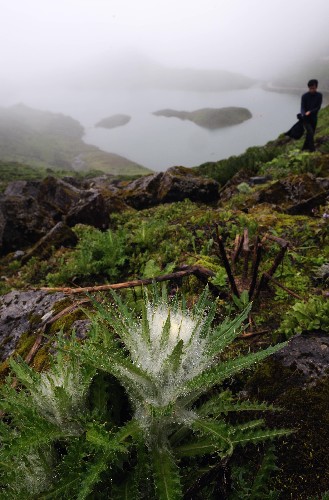 生长在墨脱县嘎隆拉雪山上的雪莲花(7月11日摄)。 新华社记者 格桑达瓦 摄