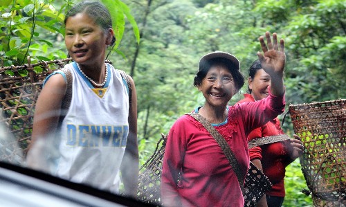 墨脱县的门巴族群众友好地和游客打招呼(7月10日摄)。 新华社记者 格桑达瓦 摄