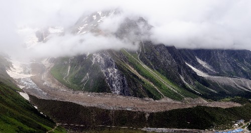 墨脱县嘎隆拉雪山下独特的“舌形”冰川(7月11日摄)。 新华社记者 格桑达瓦 摄