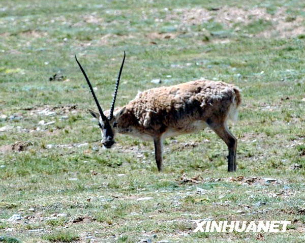 生活在羌塘自然保护区的国家一级保护动物藏羚羊(7月31日摄)。 新华社记者 唐召明 摄
