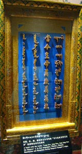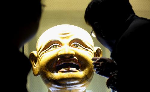 展品中最引人注目的是一件“八瓣莲花喜金刚坛城像”。布达拉宫管理处保管部主任白顿告诉记者,这堪称镇馆之宝。这尊14世纪的造像通高81.4厘米,为密宗供奉像,也是坛城的一种表现形式。莲瓣中央为喜金刚像,每片莲瓣上均有四尊密宗本尊携眷像,是典型的明永乐年中原宫廷造像风格。