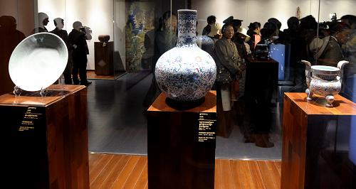 珍宝馆中展出的宫藏文物绝大部分有历史文献明确记载,但白顿告诉记者:至少有5件国宝级文物的产地、年代还在考证之中。
