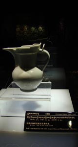 在珍宝馆二楼,记者看到了争议最大的一件文物——白釉暗海螺纹碗。有专家初步认为它是12世纪的文物,至于是内地还是西藏的尚待确认。前段时间,从北京来的几位专家经过考证,提出该碗是16世纪的文物,可能产于西藏。