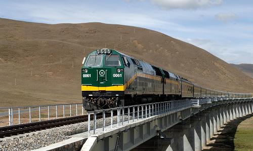 资料图片:行驶在藏北草原上的钢铁巨龙(2006月6月27日摄)。新华社记者 觉果 摄