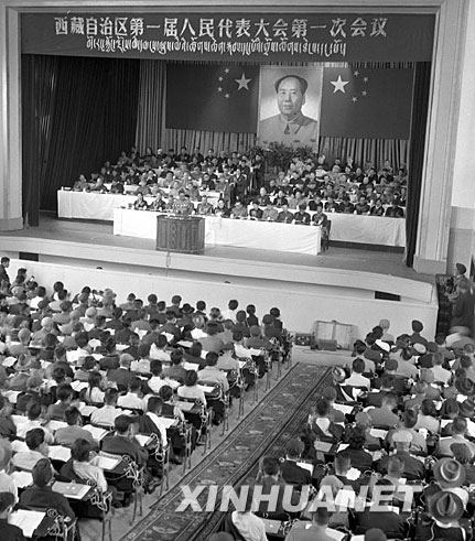 资料图片:1965年9月,西藏自治区第一届人民代表大会第一次会议召开,选举产生了西藏自治区自治机关及其领导人,宣告了西藏自治区的正式成立。阿沛·阿旺晋美当选为自治区人民委员会主席,一大批翻身农奴担任了自治区各级政权机关的领导职务。西藏人民从此享有了自主管理本地区事务的权利。新华社发
