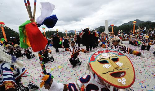 2009年8月20日,拉萨市小学生在布达拉宫广场表演藏戏。新华社记者 格桑达瓦 摄