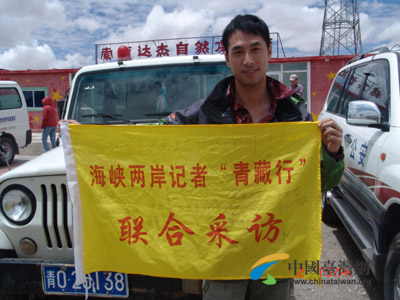 中国台湾网7月13日格尔木消息 昨天,海峡两岸记者青藏行联合采访团的记者采访参观了索南达杰保护站。记者们在采访中,对藏羚羊等自然保护动物有了更深的认识,为了呼吁更多的人来关注和保护野生动物,两岸记者用联合签名的方式,来表示对那些在艰苦条件下参与保护野生动物的志愿者的深深敬意,之后,两岸记者把签名的旗帜送给了索南达杰保护站的工作人员。(谢晓萍)