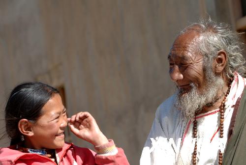 资料图片:藏北那曲镇一对祖孙俩(2006年6月13日摄)。新华社记者 觉果 摄